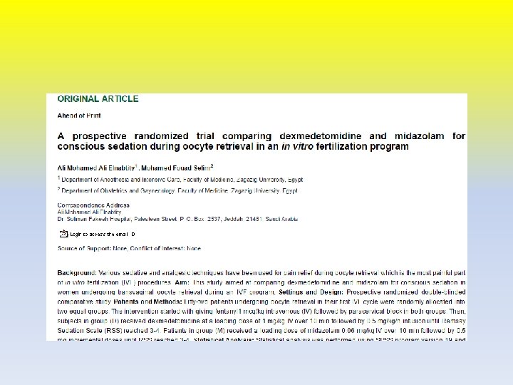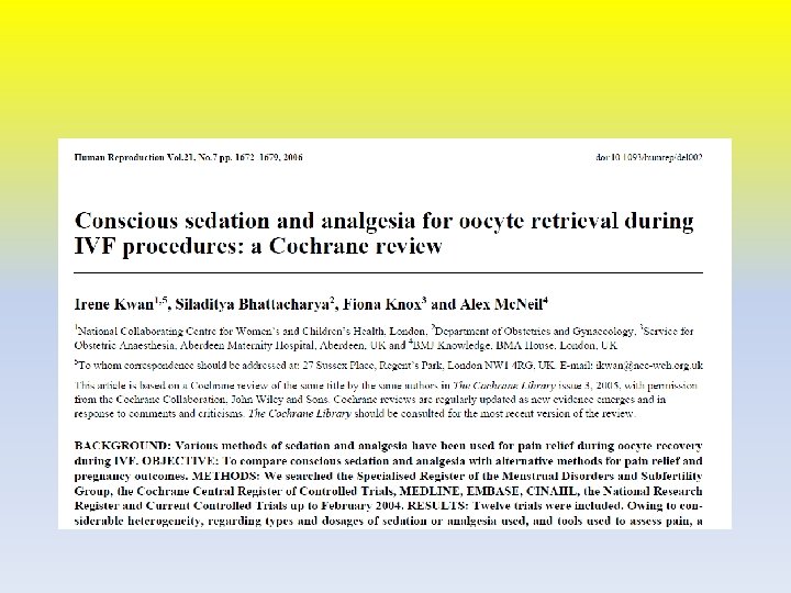 Neuraxial blockade • Epidural anesthesia is another mode of analgesia for IVF, and it can be a viable option in some conditions • Spinal anesthesia has also been used with high rate of success. • Hormonal response to follicular puncture is fully attenuated by regional anesthesia and partially by technique requiring sedation Where • fertility rates are similar indicated
