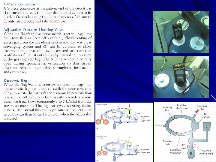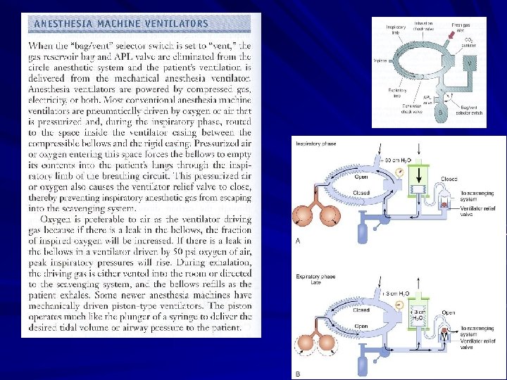 Circle System Advantages – – – Relative stability of inspired concentration Conservation of respiratory moisture and heat Prevention of operating room pollution Pa. CO 2 depends only on ventilation, not fresh gas flow Low fresh gas flows can be used Disadvantages – Complex design = potential for malfunction – High resistance (multiple one-way valves) = higher work of breathing