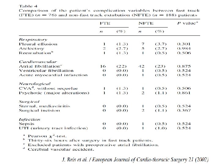 Programme d’extubation précoce fastrack et ultra fastrack VM % complications 100 VS Complications précoces Complications tardives (chirurgie) (réanimation) Fenêtre d’extubation 0 H 7 H 48 Diminuer le temps de séjour en réanimation et le coût global de l’hospitalisation sans augmenter la morbi-mortalité