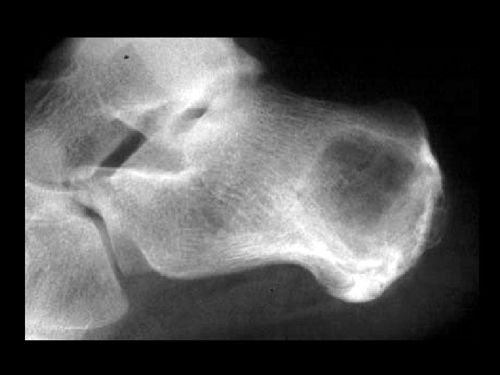 Stress fracture • Findings: – Slightly angulated fracture of the distal 3 rd metatarsal – Periosteal reaction – Surrounding calcified osteoid matrix = callus • ddx: – Osteosarcoma with pathologic fracture