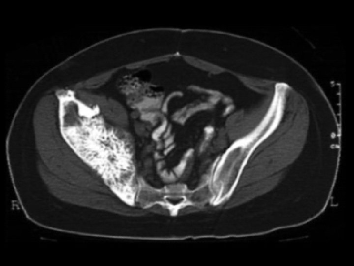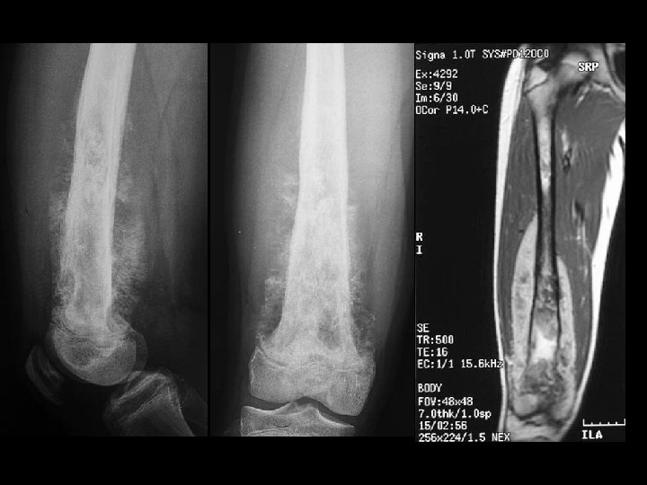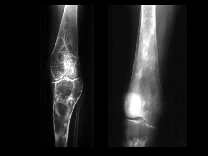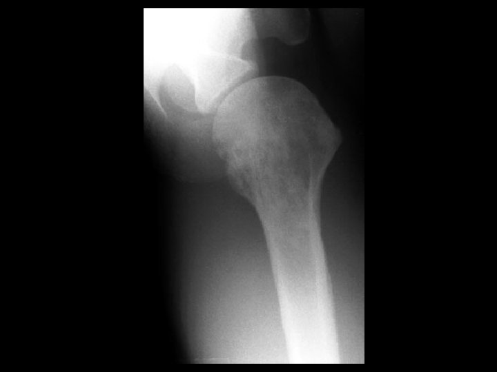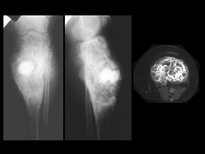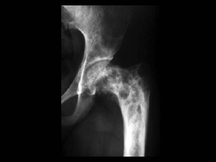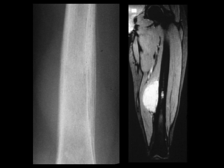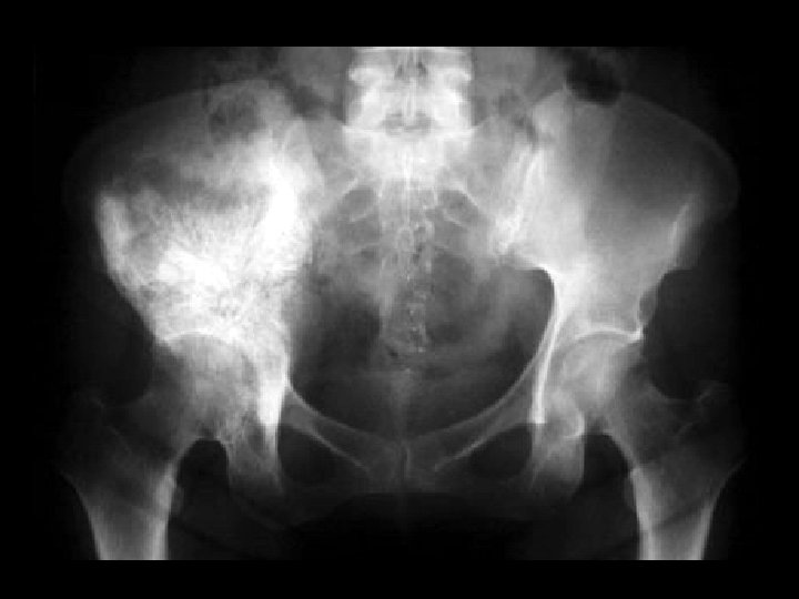 Malignant fibrous histiocytoma • Findings: – Permeative lesion of the superior pubic ramus • ddx: – Lymphoma – Multiple myeloma – Metastasis – Osteomyelitis