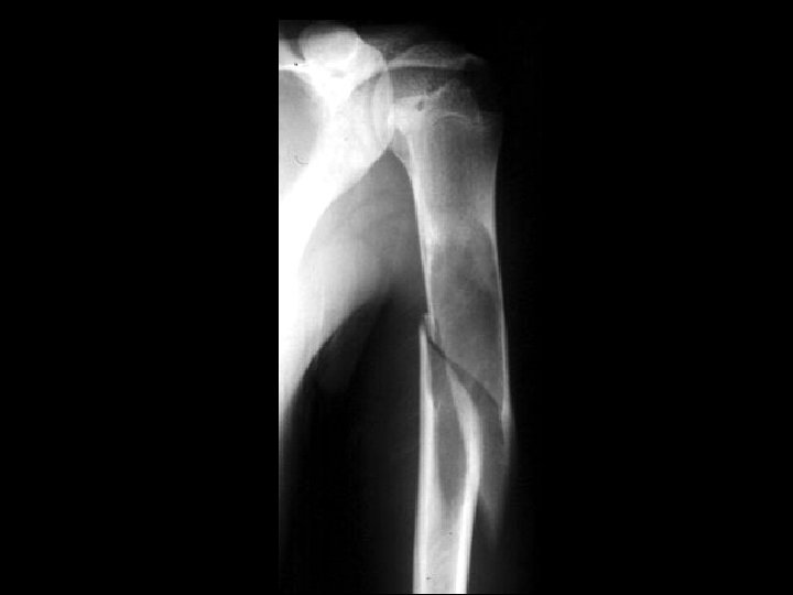 UBC & pathologic fracture • Findings: – central lucent lesion with a narrow zone of transition complicated by a pathologic fracture • ddx: – NONE! – This is an Aunt Minnie!