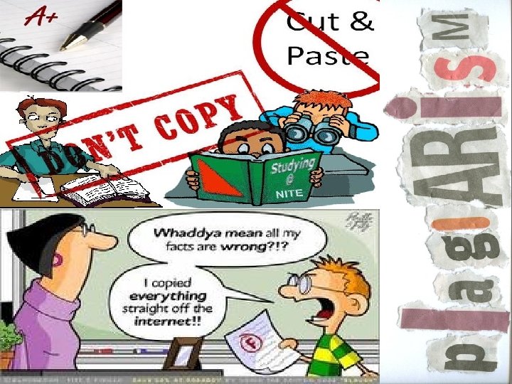 Sa paggamit ng Internet, maraming mag-aaral ang mabilis na nakakahanap ng materyales para sa pananaliksik na maari nilang kopyahin at idikit sa sarili nilang pagsusulat. Ang hindi pagsabi ng pinagmulan ng material ay iligal na pangongopya at tinuturing na pangdaraya
