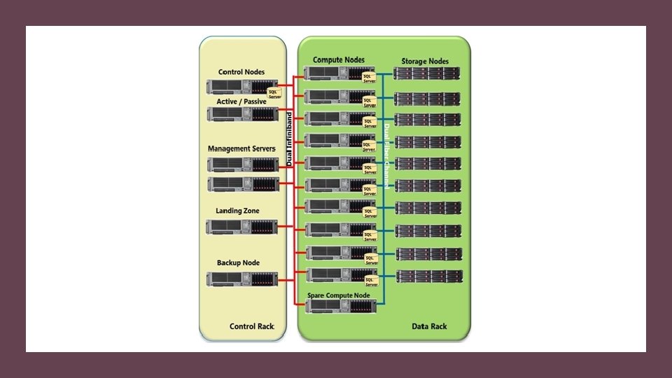 Compute Node • Compute Node – The Compute nodes are parallel data processing and storage units. They have direct attached storage and use SQL Server to manage user data. • Data Movement Service (DMS) runs on each Compute node to do the following: – As part of processing parallel queries, DMS transfer data to and from other Computer nodes and the Control node. – receives data loads in parallel. Data is loaded in parallel directly from the loading server to the Compute nodes – transfers data from each Compute node directly to the backup server. • Compute node databases Each Compute node runs an instance of SQL Server to process queries and manage user data.