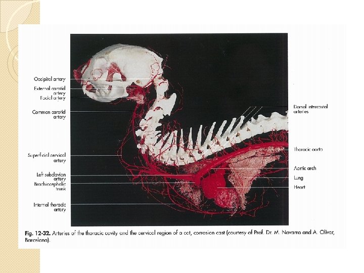 ARTERI CAROTIS COMMUNIS � Merupakan keberlanjutan ke arah cranial dari Trunchus Bicaroticus (ruminansia dan kuda) � Berjalan sejajar dengan N. Vagusimpaticus pada daerah laher � Mencabangkan: 1. A. Thyreoidea caudalis 2. A. Laryngea cranialis 3. A. Occipitalis 4. A. Carotis interna 5. A. Carotis externa 6. A. Linguofacialis: A. Lingualis lidah, A. Sublingualis lidah, A. Palatina ascendens pharynx
