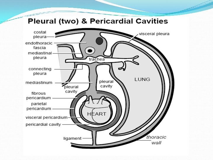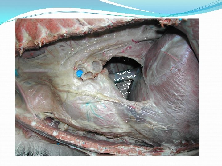 descending aorta parietal pleura viceral pleura caudal vena cava plica vena cava pericardial mediastinal pleura fibrous pericardium parietal serous pericardium visceral serous pericardium myocardium endocardium