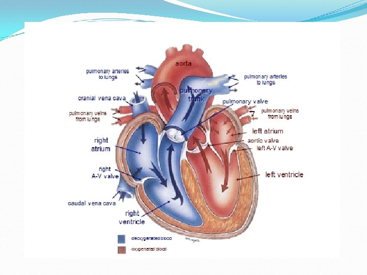 E- It receives deoxygenated blood from the body by five chief openings and pumps it into the right ventricle through the right atrioventricular orifice. The opening are: 1 -The cranial (superior) vena cava: is bringing de-oxygenated blood from the veins from the head and cranial body and empties into the right atrium of the heart cranially. 2 -The caudal (inferior) vena cava: is bringing de-oxygenated blood from veins from the legs and caudal body and empties into the right atrium of the heart caudally Inter-venous crest : project ventral and cranial from the dorsal wall of opening of the caudal vena cava. Function: It tends to direct the flow of blood from the cranial vena cava to the right atrioventricular opening.