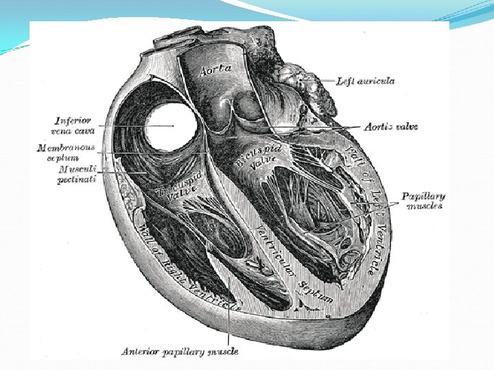 D-The left ventricle 1 -is longer and more conical in shape than the right, and on transverse section its concavity presents an oval or nearly circular outline. It form the left caudal part of ventricular mass. 2 - It receives oxygenated blood from the left atrium by left atrioventricular orifice that guarded by the bicuspid valve, and pumps it into the aorta by the aorta opening that guarded by the aorta valve 3 -it also forms the apex of the heart. 4 -The left ventricle is thicker and more muscular than the right ventricle because it pumps blood at a higher pressure. Interventricular septum (IVS), is separating between the two ventricles of the heart , and is directed obliquely backward, and is curved with the convexity toward the right ventricle. Tts margins correspond with the left and right longitudinal sulci. Disorders A hole in the interventricular septum is termed a ventricular septal defect (VSD).