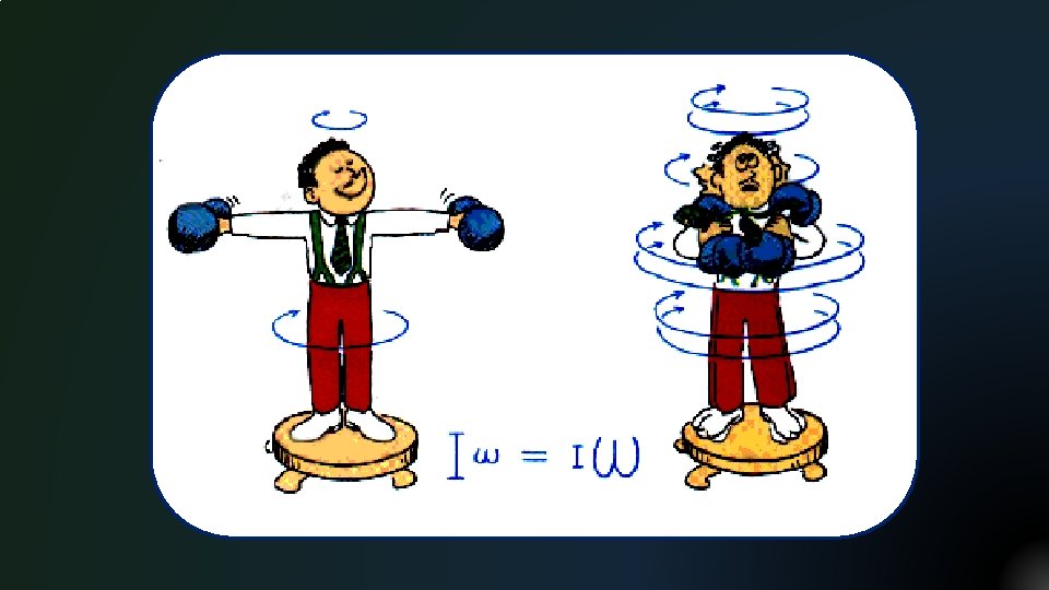 • Applying conservation: • I 1ω 1 = I 2ω 2 • Conservation of Angular Momentum explains the skater’s change of speed when she changes the location of her limbs. • Hint: Changes in linear mass are rare. Changes in moments of inertia are common and should be expected in problems.