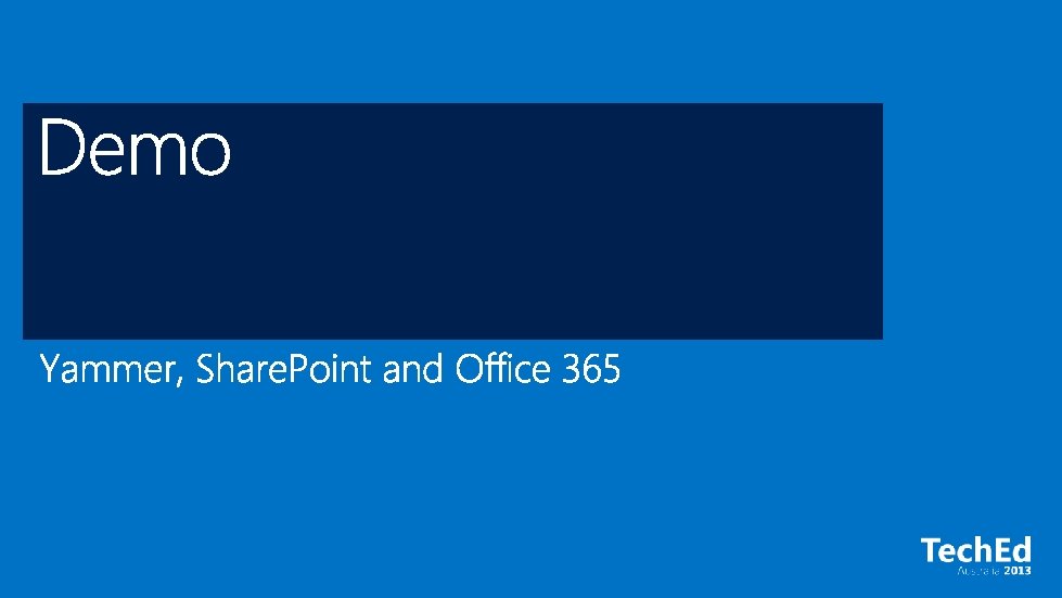 Social in the cloud Social on-premises Use Yammer Use Share. Point 2013 social Immediate social adoption & rapid innovation For organizations unable to leverage a cloud-delivered service Integrate using Yammer app & guidance