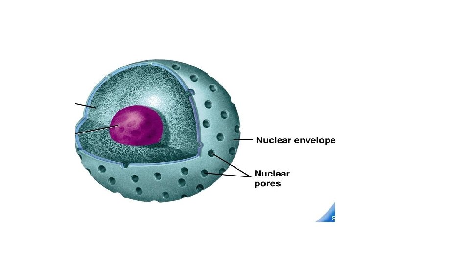 Nuclear pores • Present on the nuclear membrane are nuclear pores (made up of proteins) through which substances enter or leave the cell (RNA, proteins, etc. ). • While the lipid bi-layers are separated by a thin space between them. • Nuclear membrane pores are occupied by dense granules/fibrillar material arranged in a cylindrical manner. • The nuclear membrane is connected to the endoplasmic reticulum in a manner that creates continuity between the nucleus and the external environment