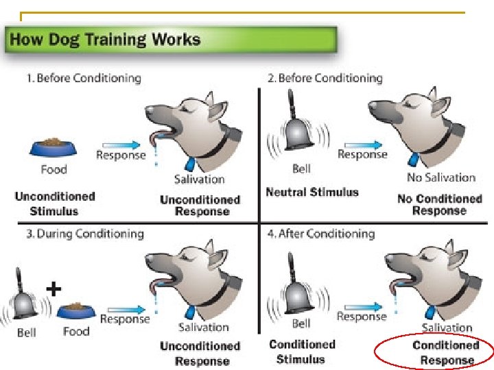 Classical Conditioning E. g. 1. leash = going for a walk, excitement 2. sight of leash = excitement