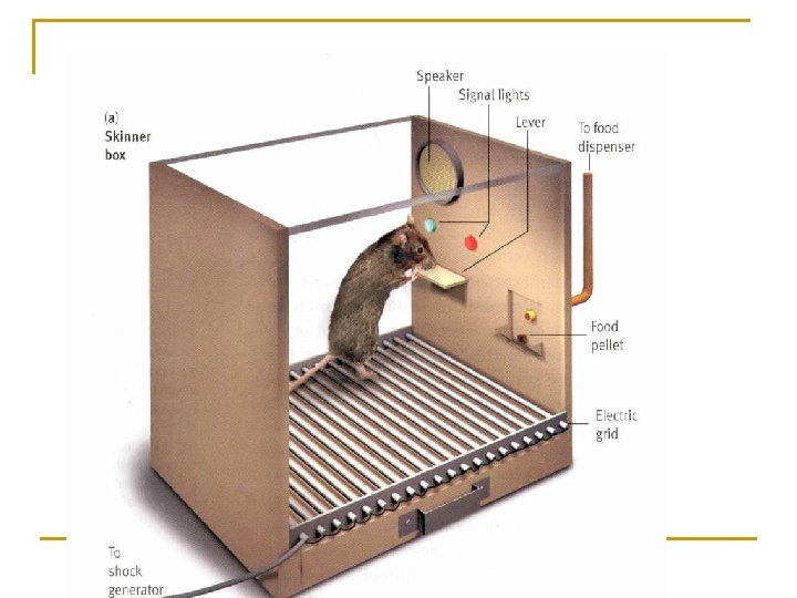 Types of Learning 4. Operant Conditioning n Animal learns to behave in a certain way through repeated practice n Trial & error learning – animal tests conditions for desired response e. g. Skinner box q n Animal learns that a behavior gets a certain response e. g. rat presses lever, gets food