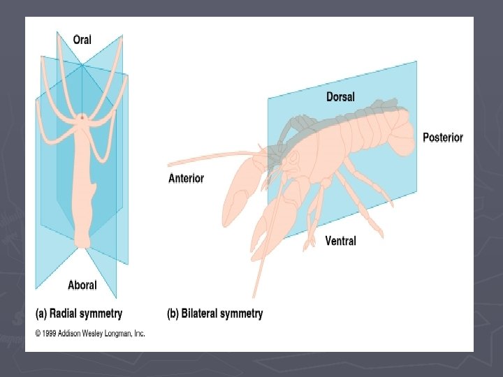 Symmetry ► Bilateral – animals have anterior, posterior, dorsal and ventral surfaces