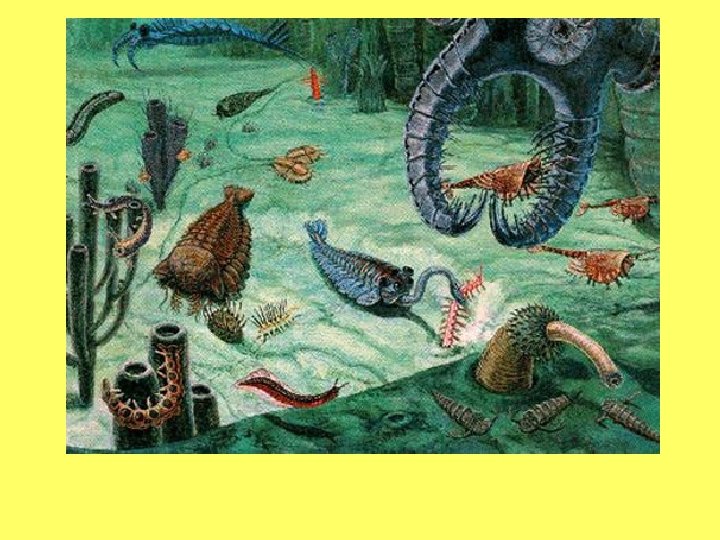 EDIA CARA HILLS (Australia) • - not much on origins • - 630 mybp preserved burrows and few soft bodied animals BURGESS SHALE (Canada) • --570 mybp Burgess Shale in southern British Columbia • -all phyla represented simultaneously?