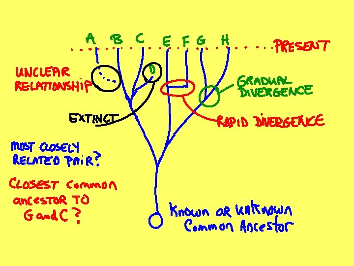 Phylogeny- shows evolutionary relationships • - phylogenetic tree • - shared common ancestor is a link • - time is usually present