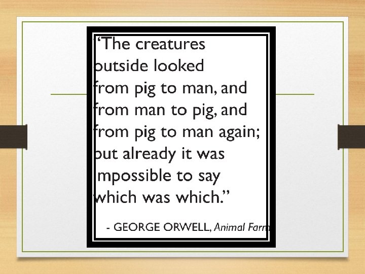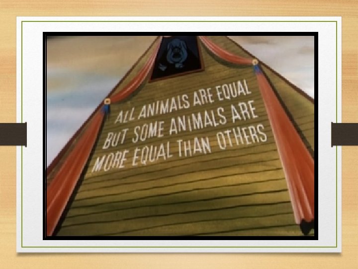 Key themes • The danger of a naïve working class • The relationship between language and power – the manipulation of language as instrumental to the control of power • Propoganda • Abuse of the word ‘equal’ • Intelligence and Education as tools of oppression • Pigs use their intelligence to deceive other animals • The pigs limit the other animal’s opportunities to gain intelligence and education