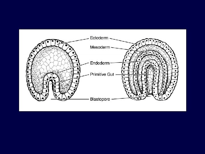 A third cell layer known as the mesoderm is formed between the ectoderm and the endoderm. The cavity that forms within the gastrula is known as the primitive gut; it later develops into the animal’s digestive system.