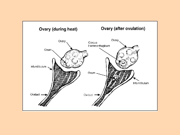 The estrous cycle begins with the ovulation of a follicle and ends with the ovulation of the next follicle. When it erupts, the follicle releases the egg to the oviduct and develops a corpus hemorrhagicum. The corpus hemorrhagicum last 2 -3 days before it is replaced by the corpus luteum.