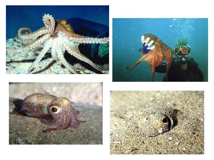 Mollusks Broad Muscular foot - Layer of tissue called mantle - Have shells - Group includes: gastropods bivalves & cephalopods - Gills - Examples: Complex ganglia, Snails, Slugs, Clams, Oysters, Squids, Octopuses - Reproduction: SEXUAL -