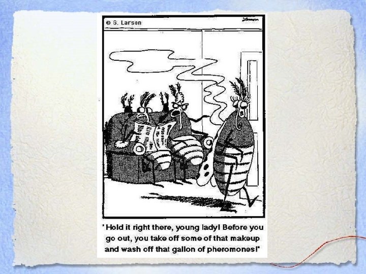 Pheromones • These are chemicals used to communicate between members of the same species. • Members of the same species have receptors to pick up these pheromones, other species ignore them.