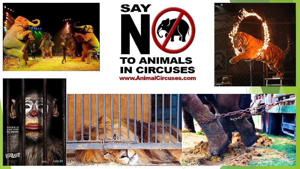 Massachusetts Society for the Prevention of Cruelty to Animals (MSPCA) Certain states prohibit circuses from coming into them. Animal Welfare Act requires a minimum of standards of care and treatment be provided, but circuses violate quite a few. Reasons: Animals travel every week Forced separation from herds and babies Chained when not performing Restrictive caging, stand lay down in their own waste Coercive training methods Tricks are frightening, unnatural, painful Bullhooks and other prods are used in training No climate control during transport and housing. Animals hurt their trainers Some get loose and cause accidents and injure others.