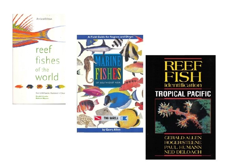 IKAN TERUMBU - Fungsi dalam sistem terumbu karang • Ikan Mayor Pomacentridae, Pomacanthidae, Acanthuridae, Labridae, Lutjanidae • Ikan Indikator Chaetodontidae • Ikan Target Lutjanidae, Serranidae, Scombridae, Sphyraenidae, dan Caesionidae