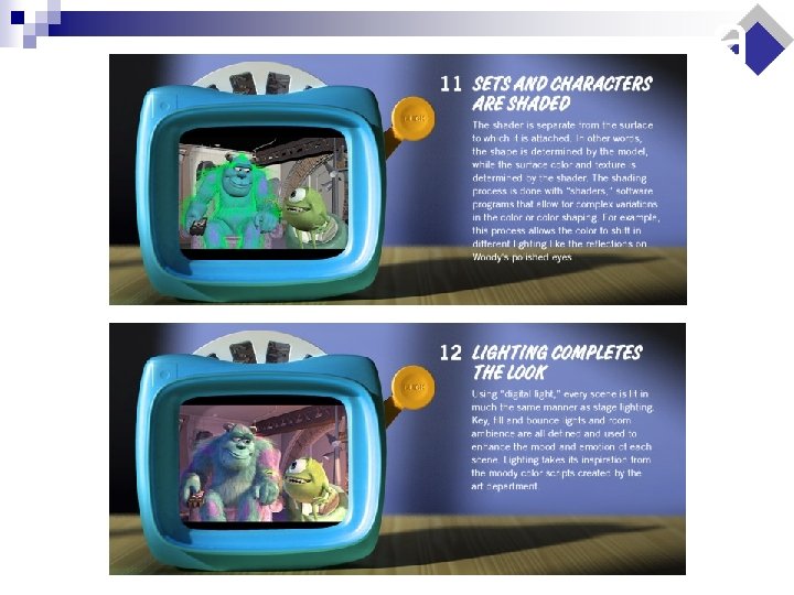 Teknik animasi komputer n Elemen: Objek yang dianimasikan: tipe, sifat dasar dll ¨ Pergerakan: trayektori, pemrograman dll ¨ n Beberapa tipe animasi komputer: 1. 2. 3. 4. 5. Rigid body animation Articulated structure animation Dynamic simulation Particle animation Behavioral animation Pixar’s Luxo Jr.