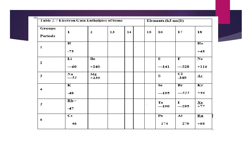 Ø The First Electron Affinities always have Negative values. ØThe –ve sign shows the release of energy.