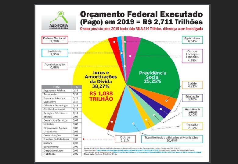 Novo patamar do SISTEMA DA DÍVIDA Mecanismos financeiros geram dívida pública que sequer é registrada como “dívida pública” ü “Depósito Voluntário Remunerado” esconde a dívida pública ü Esquema da Securitização se apropria dos recursos públicos BANCOS FOGEM DA AUDITORIA E APROFUNDAM O SISTEMA DA DÍVIDA – Vídeo https: //bit. ly/32 CSDpn
