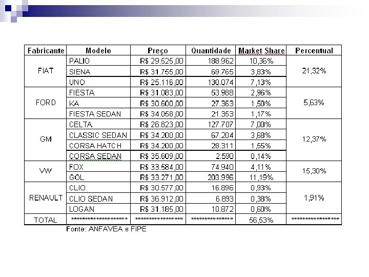 Problemas Conceituais do Modelo Logit Exemplo de uma matriz de elasticidades do modelo Logit. n Automóveis novos no Brasil (De. Souza, Petterini e Silva, 2009) n