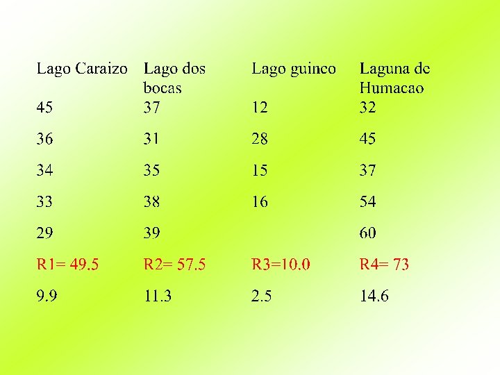 RESULTADO • • # GROUPS = 4 # TIES = 2 H = 10. 803 HTIES = 10. 822 • F = 7. 5 • F 3, 14 = 4. 24