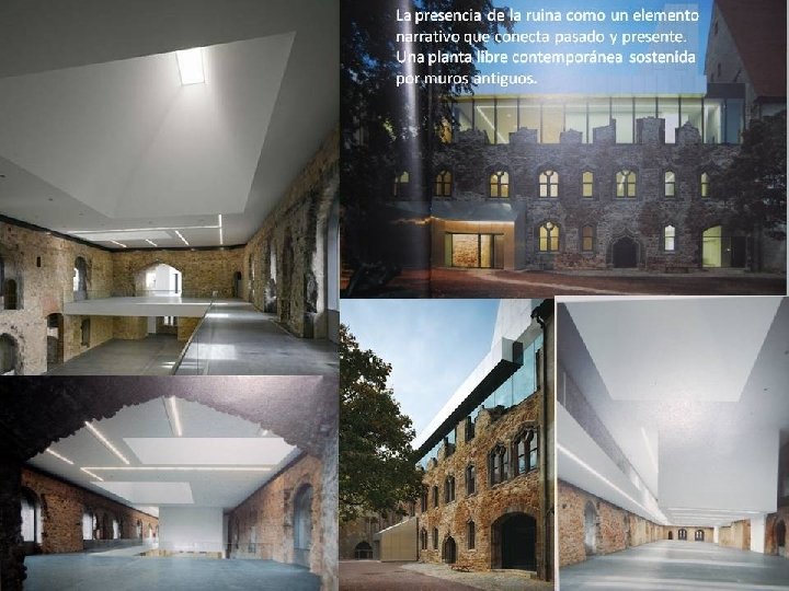 Conclusión: Se rescatan aspectos formales, de lo previamente existente, manteniendo objetos poéticos y históricos que le dan el carácter al proyecto, usando una solución minimalista, para hablar del tiempo y lo viejo, mostrando lo nuevo, donde el contenedor trata de ausentarse para resaltar el contexto y la configuración del proyecto.