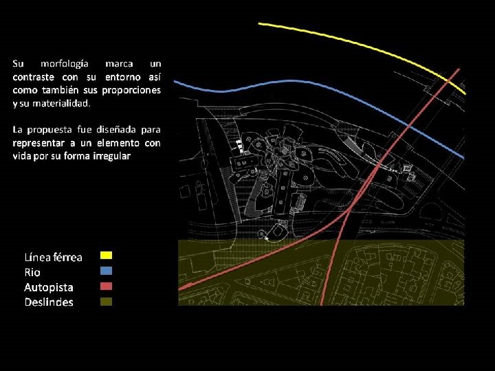 Caixa. Foum CAIXAFORUM El edificio es una remodelación del edificio donde antes funcionó la antigua Central Eléctrica del Mediodía, fue diseñado por los arquitectos suizos Herzog & de Meuron y se encuentra ubicado en pleno corazón de Madrid, en el Paseo del Prado 36. Contexto Su mayor escala esta justificada ya que buscara la armonía con su contexto mas próximo. DIEGO LAVIN TALLER III JONATHAN CABREA MARTIN SCHMIDT / RODRIGO VALENZUELA Su ubicación junto al paseo del Prado viene a complementar la oferta cultural de la zona, compuesta por el Jardín Botánico, el Museo del Prado, el Museo Thyssen-Bornemisza y el Museo Nacional Centro de Arte Reina Sofía, esto nos dice que su propuesta busca potenciar culturalmente este lugar mas de lo que ya es, con una temática netamente de programas de exhibición de arte español y contemporáneo.