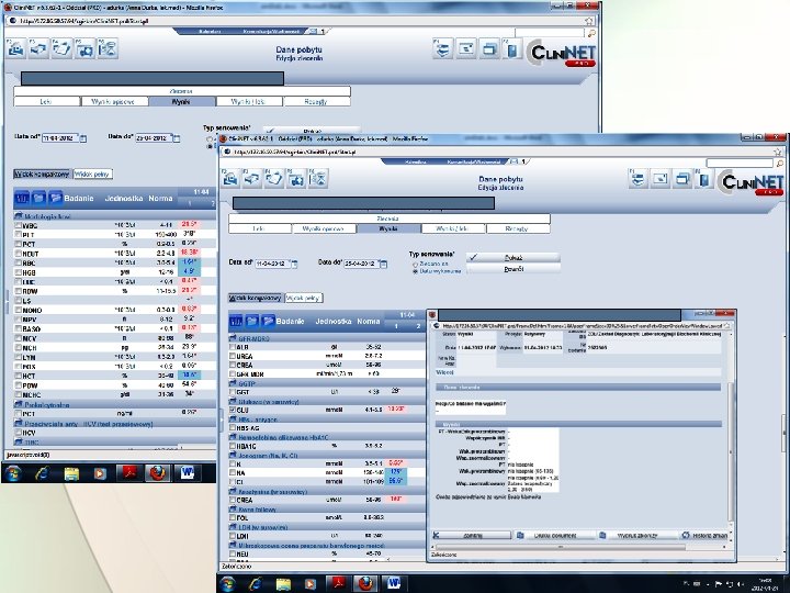 Kaniulacja naczynia centralnego Wobec trudności z założeniem kaniuli obwodowej i pobrania krwi do badań laboratoryjnych, wezwano zespół OIT na konsultację i poproszono o założenie kaniuli centralnej. W chwili przyjęcia chora przytomna, w ograniczonym kontakcie słowno-logicznym, okresowo pobudzona, agresywna. Parametry życiowe: HR 78 -110/min NIBP 110/60 mm. Hg. Oddech własny z tlenoterapią bierną przez wąsy tlenowe, następnie maskę z rezerwuarem, SPO 2 80 -96% Pacjentce założono kaniulę do żyły głównej górnej drogą żyły szyjnej wewnętrznej prawej; przebieg bez powikłań. Pobrano krew do badań laboratoryjnych.