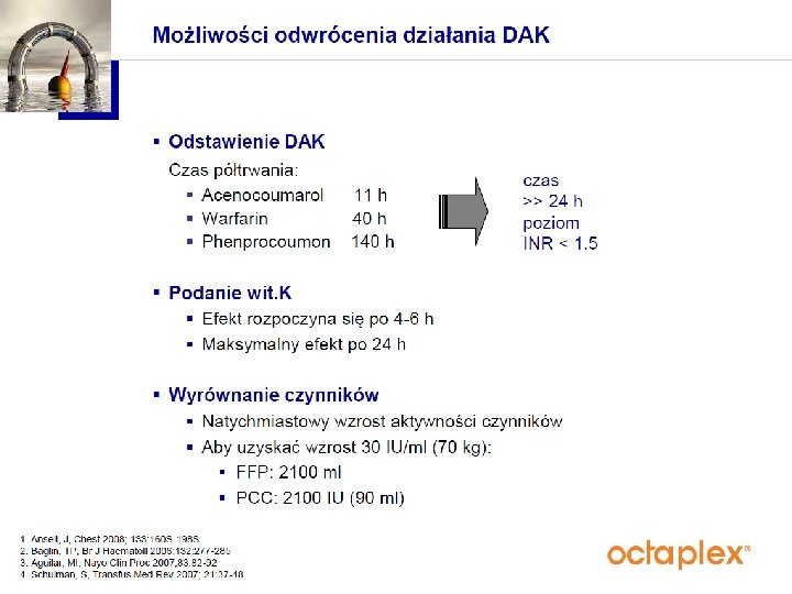 Anna Durka Zastosowanie preparatu Octaplex u pacjentki po przedawkowaniu acenokumarolu - opis przypadku Klinika Anestezjologii i Intensywnej Terapii USK im. WAM - CSW w Łodzi Kierownik: Prof. dr hab. n. med. Waldemar Machała Spotkanie Studenckiego Koła Naukowego Anestezjologii, Intensywnej Terapii i Medycyny Ratunkowej 26. 04. 2012 r.