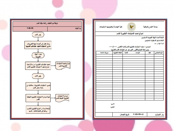 Naming the procedure’s forms • To symbolize form The symbol “ED” • To symbolize Engineering Department The letter “F” • “SG” to symbolize students guidance Example Full Name • F-ED-SG-01 Numbering • 01, 02, 03, …