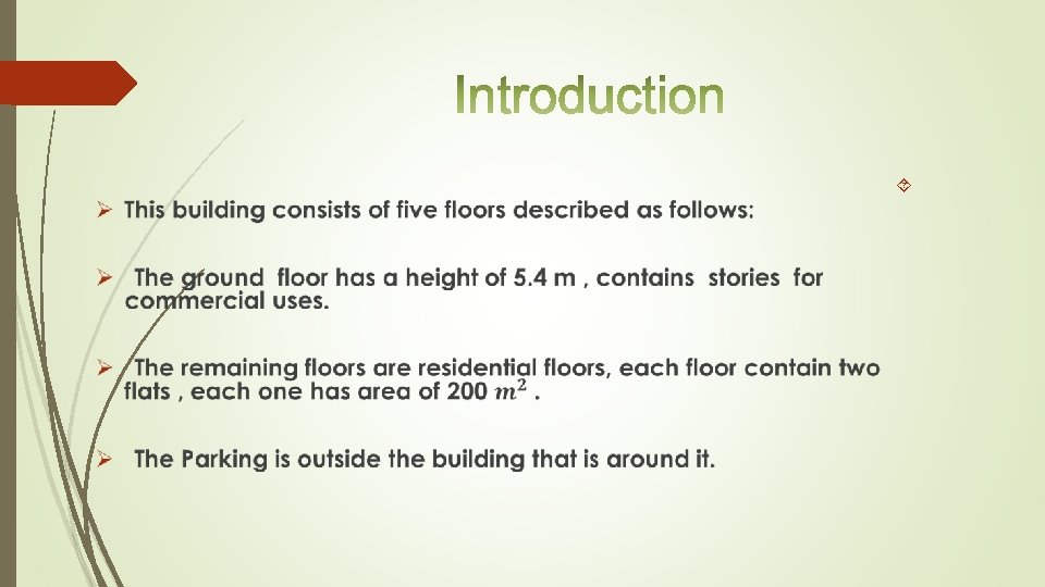 Presentation Outline q Introduction. q Preliminary Design. q 3 D- Modeling & Checks. Ø Slabs. q Design of columns (static). q Dynamic analysis : Ø Dynamic analysis for seismic loading Ø Analysis and design of slabs (dynamic) Ø Analysis and design of beams (dynamic) Ø Analysis and design of columns (dynamic) Ø Design of footing q Special structural elements Ø Stairs Ø Tie beams