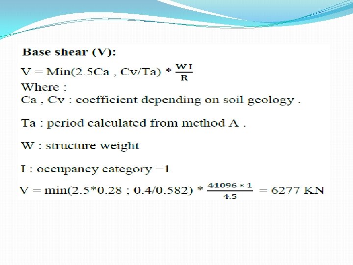 Ø Check Period (T) : The structure has a period T =0. 477 seconds T = 0. 48 sec T method A :