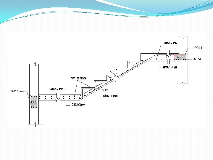 Design of stairs Own weight = 6 KN/m SID = 4 KN/m Live = 5 KN/m Vu = 55. 4 KN ɸ Vc = 86 KN OK Mu = 73 KN. m Use 1 Ø 18 / 150 mm