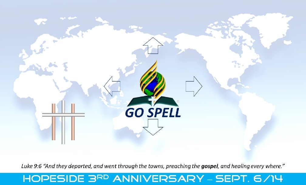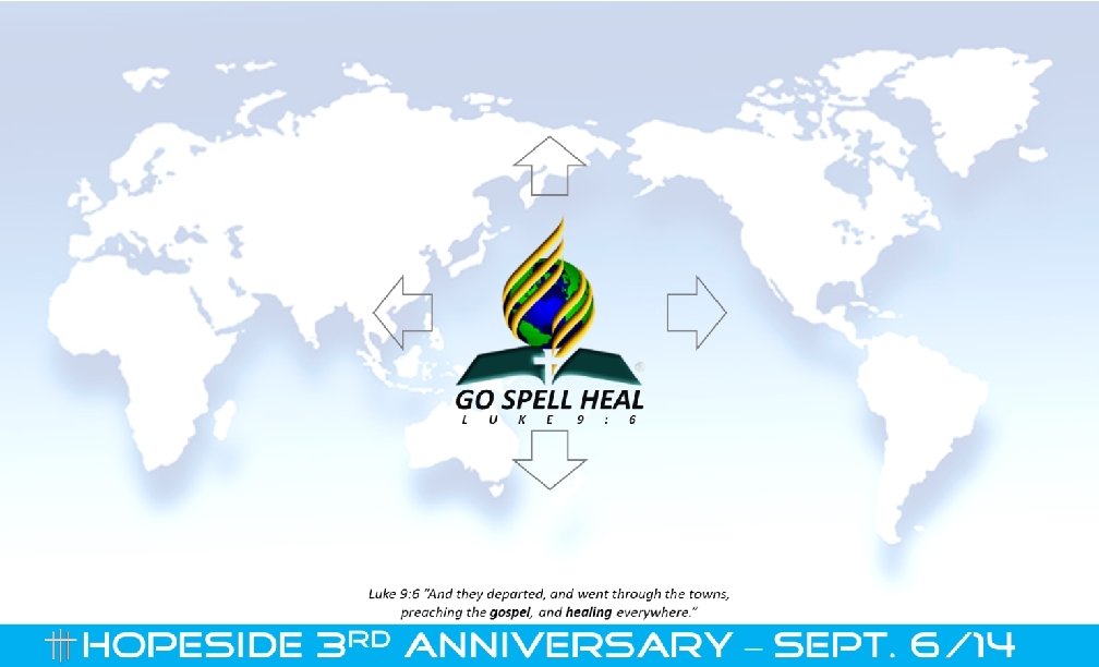 GO SPELL HEAL L U K E 9 : 6 Luke 9: 6 “And they departed, and went through the towns, preaching the gospel, and healing everywhere. ” HOPESIDE 3 rd ANNIVERSARY – SEPT. 6/14