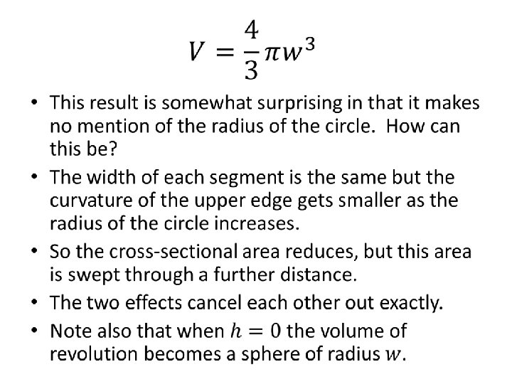 Extension • Locate the centre of area of the segment • The volume of a solid with a regular cross section can be found by multiplying the area of the cross section by the length of the path taken by its centre of area. Since we can calculate the area of cross section and the volume of the solid we can easily determine the distance to the centre of area from the axis of rotation.