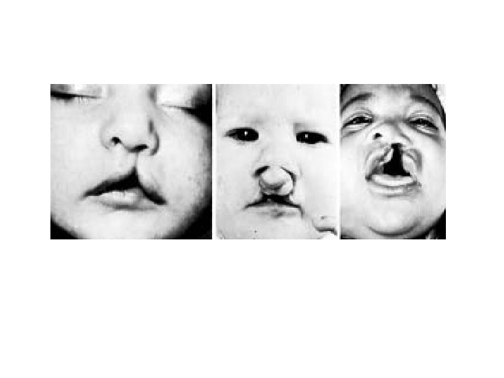• Median cleft lip, a rare abnormality, is caused by incomplete merging of the two medial nasal prominences in the midline.