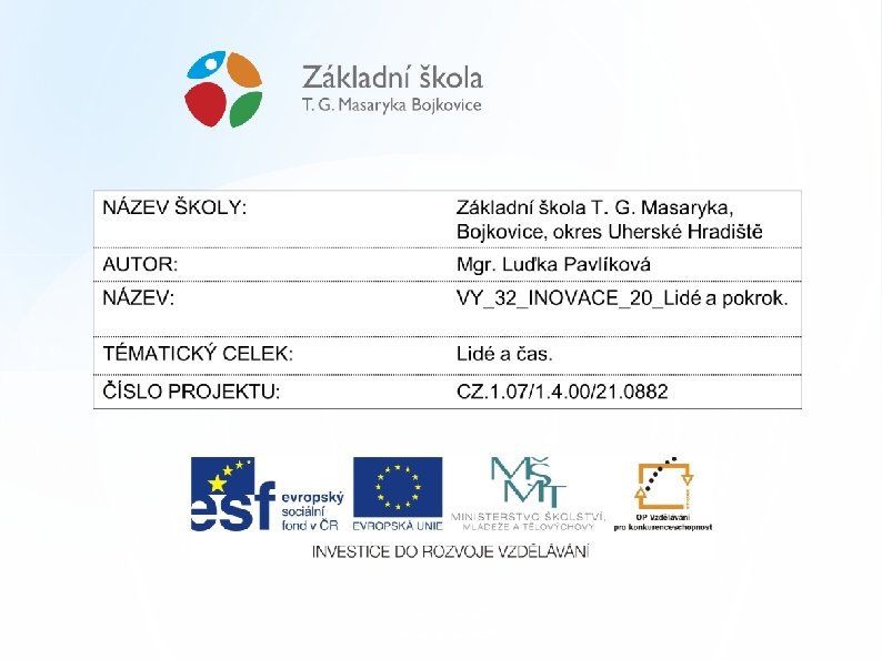 *Anotace: Prezentace slouží k vyvození učiva o výrobcích – pomocnících, které si lidé vyrobili v minulosti a přítomnosti, vysvětlení, co je to pokrok.
