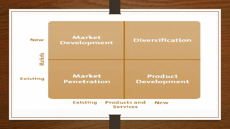 UNDERSTANDING THE TOOL • The Ansoff Matrix was developed by H. Igor Ansoff and first published in the Harvard Business Review in 1957, in an article titled "Strategies for Diversification. " It has given generations of marketers and business leaders a quick and simple way to think about the risks of growth. • Sometimes called the Product/Market Expansion Grid, the Matrix (see figure 1, below) shows four strategies you can use to grow. It also helps to analyze the risks associated with each one. The idea is that each time you move into a new quadrant (horizontally or vertically), risk increases.