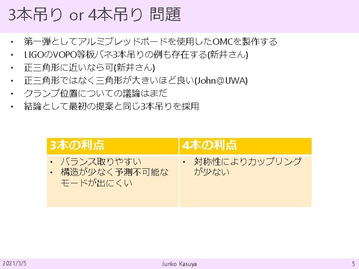 参考文献 LIGO BLADE SUS [1] “Design Equations for Initially Flat Blade Springs at Arbitrary Mounting Angles” T 0900324 -v 2 LIGO OMC [2] “Output Mode Cleaner Suspension (OMCS) Assembly Instructions” T 080117 [3] ”OMCS Installation Procedure” E 070271 -v 2 [4] “OMC Assembly Procedure” E 1300201 -v 1 KAGRA TMS [5] KAGRA 20170314_Uraguchi. F_TMSVISDesign. Review [6] KAGRA 20170213_Uraguchi. F_Blade. Spring. Design. Note 2021/3/5 Junko Kasuya 21