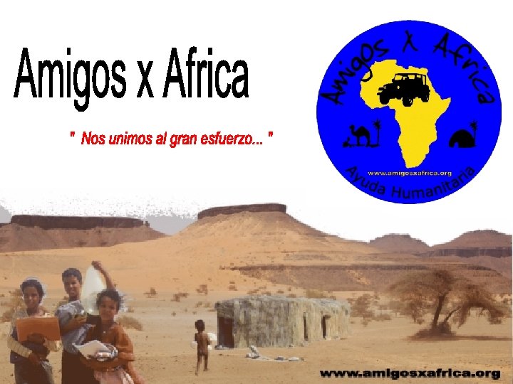 El conocer estas tierras, el sentir su dureza, el llenarte los ojos y el alma de sus contrastes y poder lanzar la mirada tan lejos como sólo sus horizontes pueden permitir y empaparte de su belleza… Todo nos impulsa a estrechar lazos con África. Porque África te hace el regalo de ser aún una tierra auténtica, donde te sientes libre… África une y te hace sentir… África fue nuestra cuna un día… Por ello esta asociación es y se llama: