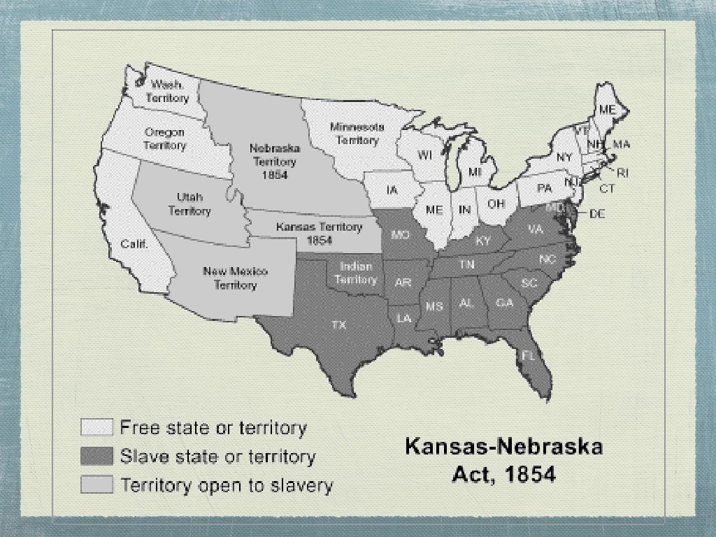 Kansas-Nebraska Act Introduced by IL Senator Stephen Douglas in 1854 organized the territories of Kansas and Nebraska on the basis of popular sovereignty people decide if their state will allow slavery it gets very violent earning the name “Bleeding Kansas”
