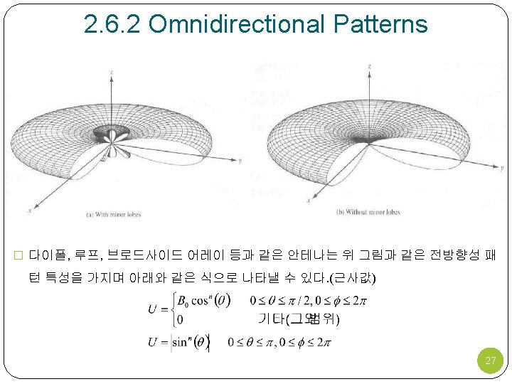 ![� Omnidirectional antenna: azimuth plane[f(Φ), θ=π/2]에 대해 nondirectional pattern을 갖고, orthogonal plane(elevation plane[g(θ), Φ=constant])에 � Omnidirectional antenna: azimuth plane[f(Φ), θ=π/2]에 대해 nondirectional pattern을 갖고, orthogonal plane(elevation plane[g(θ), Φ=constant])에](https://slidetodoc.com/presentation_image_h/dd05b6e8526ca852c203e45812f7e884/image-8.jpg)