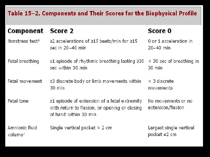 BPP Principle Indication/ Method Contraindication US + NST Nonreactive NST 1. NST with contraindication of 2. Real time US CST Back up surveillance Interpretation American College of Obstetricians and Gynecologists (1999)